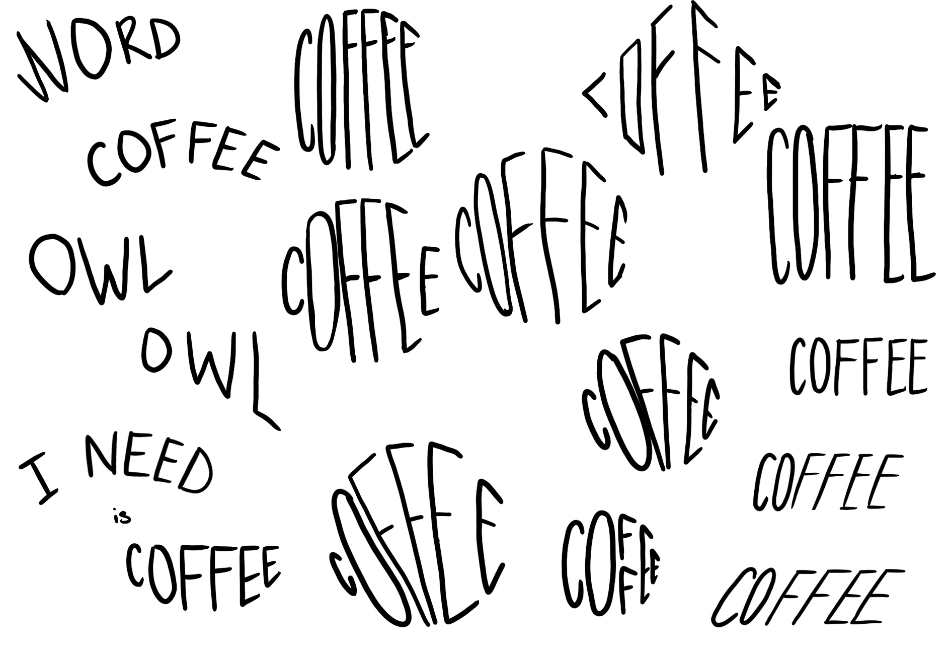 It also occurred to me that writing something on this mug would take some lettering knowledge, simply using a premade font won’t do it justice. I have several workbooks on lettering, so I decided to start working thru Jimbo Bernaus’s Shoutbam Slayout Lettering Masterclass. I’ve been playing around with the word coffee…