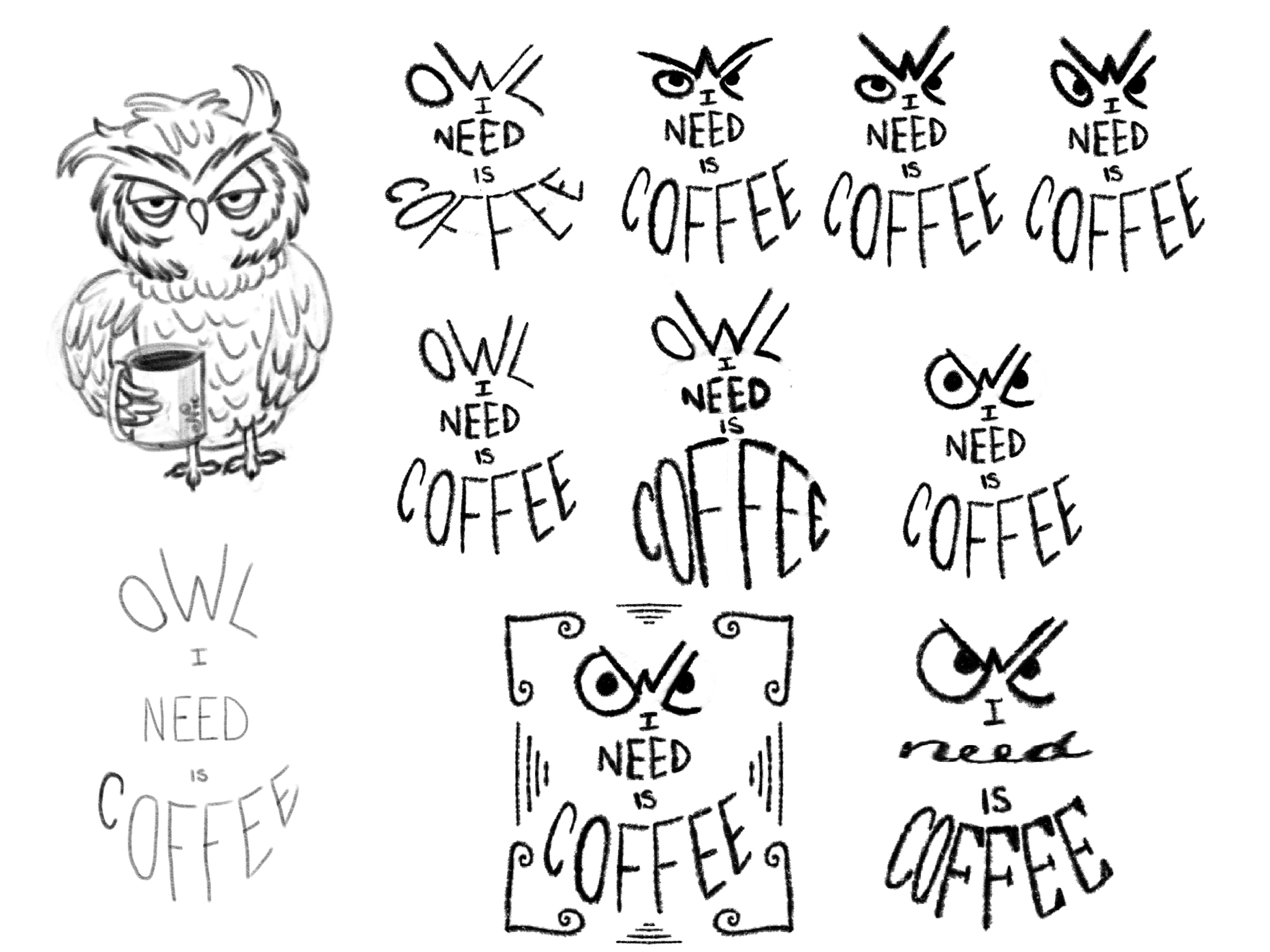 I think I’m happy with my owl sketch, now I’m working on the lettering…