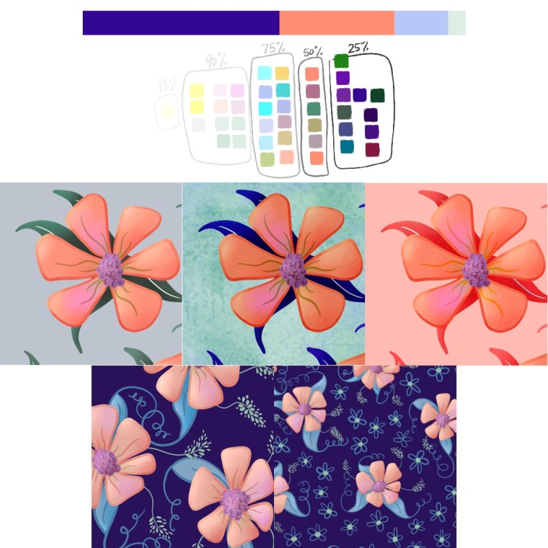 So these past few weeks have been weird. Last Monday, for some reason I just kept rolling ones. No matter how much I tried to just do the next thing, everything just kept going wrong. I was so exhausted when I got back home. So on Tuesday, I decided I just wanted to color, it tends to make me feel better and so that’s what I was going to do. I took the color palette from Monday’s Procreate Bootcamp prompt and just starting drawing daisy-like flowers. It was all going well I was adding odd colors to the mix to make my petals have some variation. Then, somehow it turned into a grudge match with myself to just get the color palette to work. For some reason, when I tried to add other elements or a background color I just didn’t like it…
