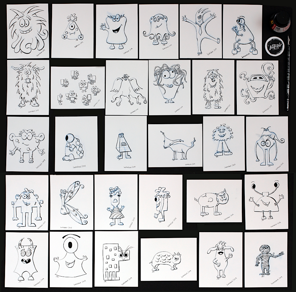 If you don’t know… For several of the Inktobers over the years I have played around with these monsters that I made from various shapes. The shape was the prompt I used each day for the Inktober challenge.