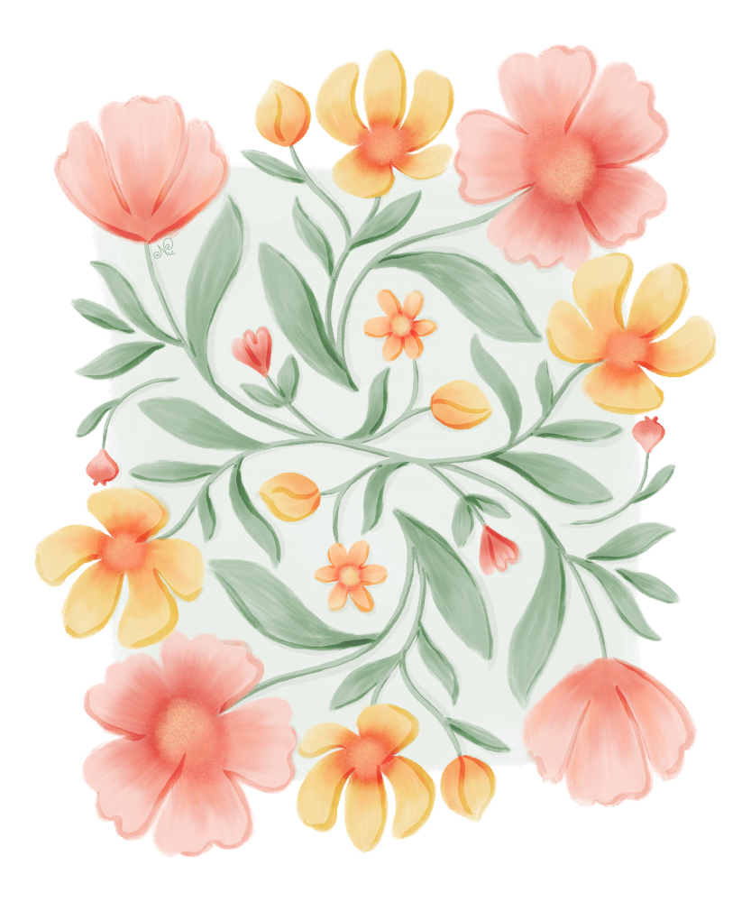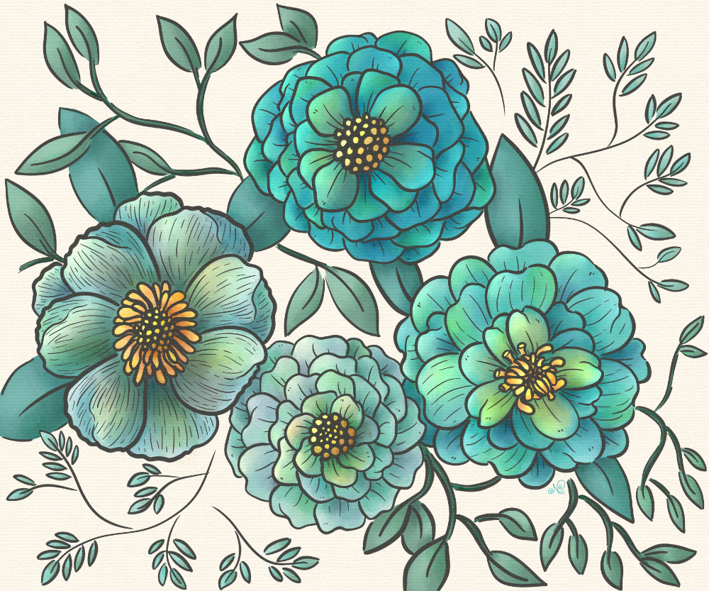 Here’s the one I did in class… I redrew the flower centers because I didn’t like them…