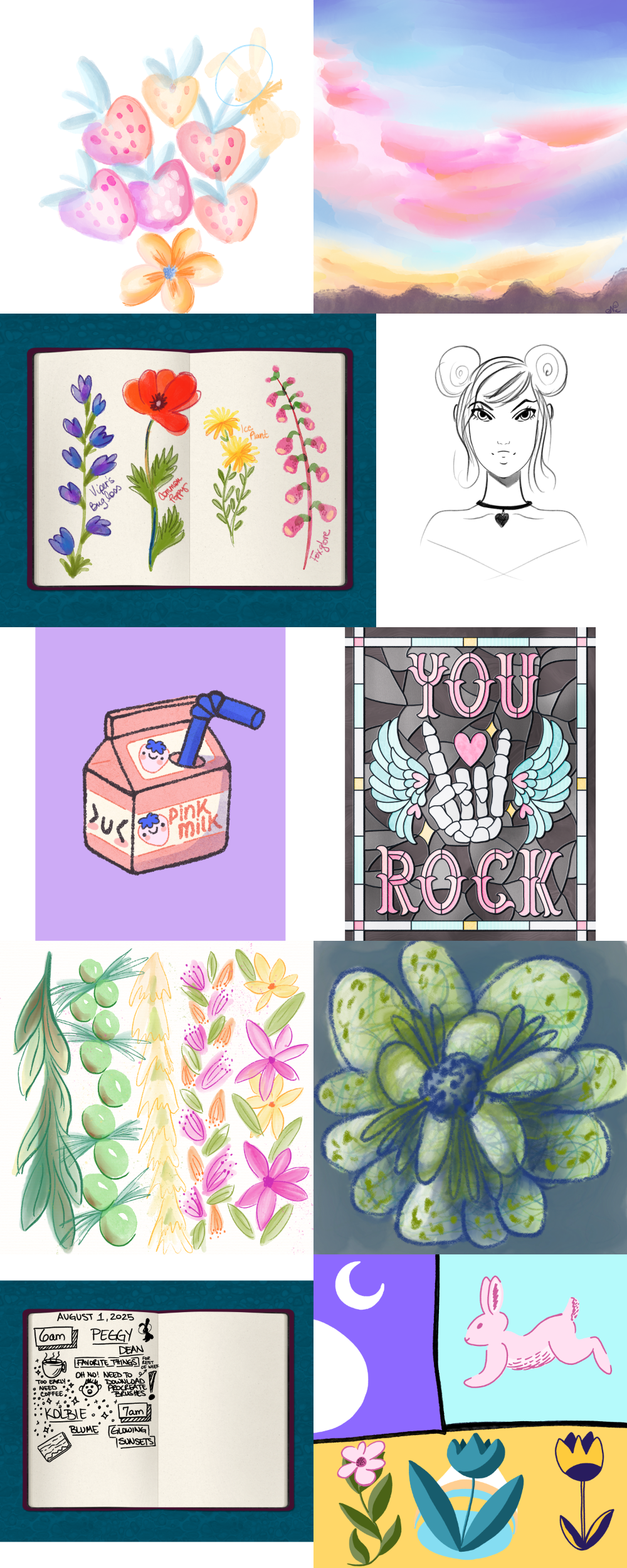 Again, since we had literally just moved, as in, we were putting our office together the night before the retreat… I ended up doing all the lessons in Procreate — since my traditional art supplies were still in boxes. Which means I don’t have 57 pieces of art to show, but very nearly. The classes that were very much paper craft, I obviously couldn’t do in Procreate. But I purchased the Permanent Vacation so I can watch all the classes again at my leisure and do them traditionally if I want to later.