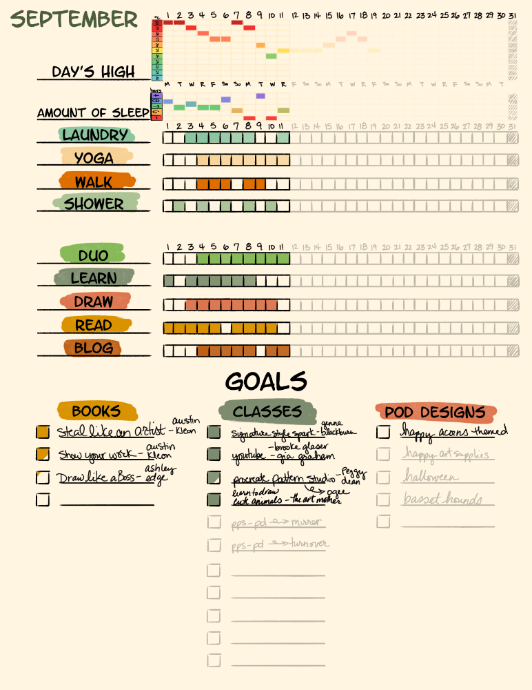 I started being more accountable with my dailies drawing on the 4th of Sept… and I think I’m doing pretty good. I was wiped out Wednesday after grocery shopping and had a migraine the next morning, and I’ve been in a bit of an insomnia battle lately… but I’m really proud of how well I’m doing.