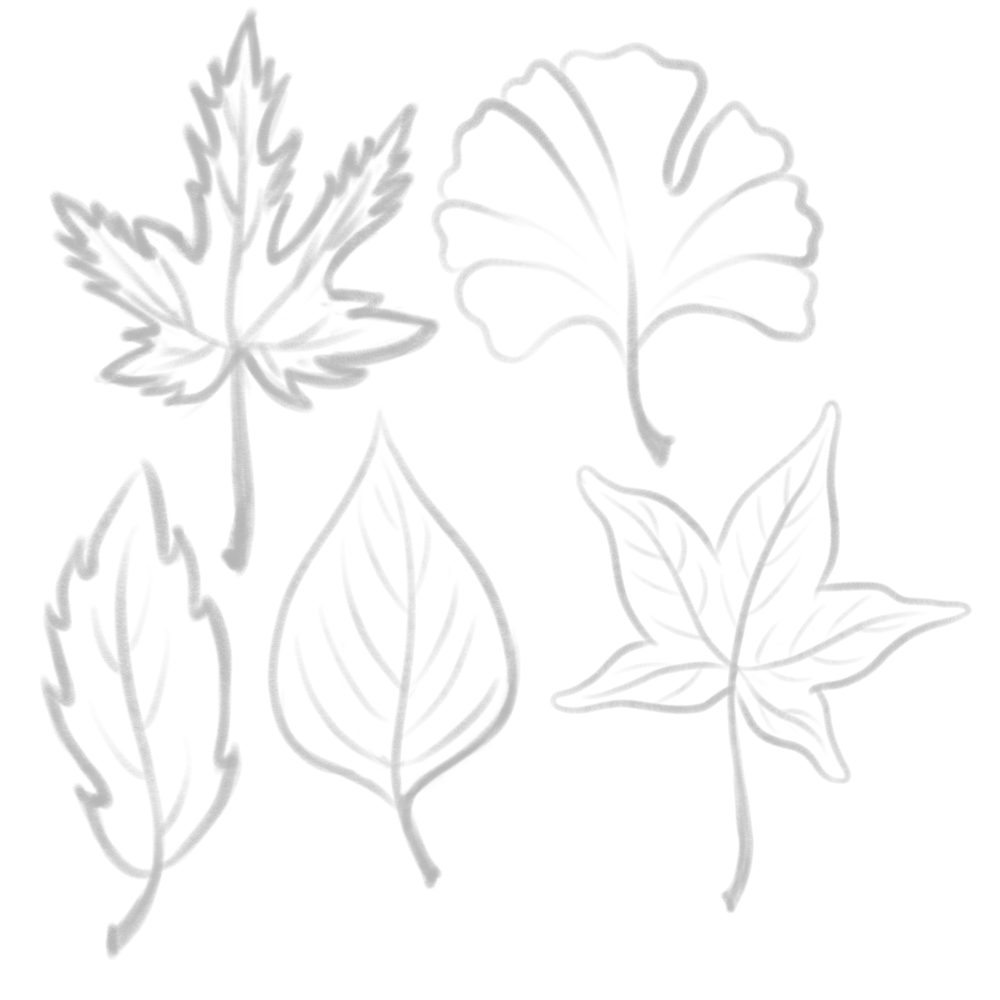 I’m still working out what to do with the Happy Acorns and the Squirrel… so I sketched some leaves using reference…
