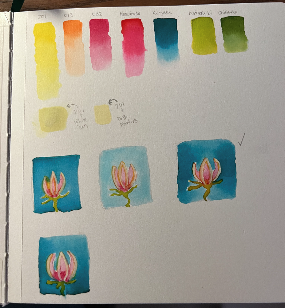 Today I played around with swatching and thumbnailing for the Flame Lily drawing…