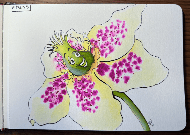 I wanted to show you the Inktober Bloomtober flowers that I finished. Also several of the things I was able to accomplish now that I am trying to do several things daily. This is a monthly wrap up post with a couple of new images and a quick list of various links to books and classes that I completed or started this month.