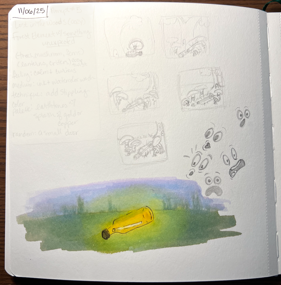 I spent the majority of the day trying to figure out how to do a glowing object in watercolor by watching lots of Youtube videos.