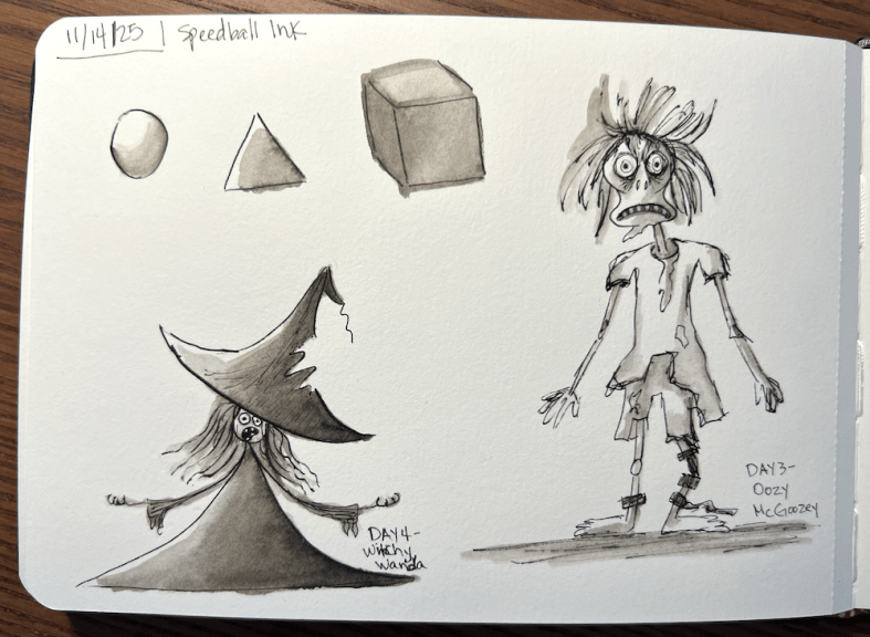I’ve been occasionally playing with ink and water while following along in the book 31 Days of Baby Boos and Spooky Dudes by Karen Campbell…. but I’ve been struggling to not have the ink get too inky…
