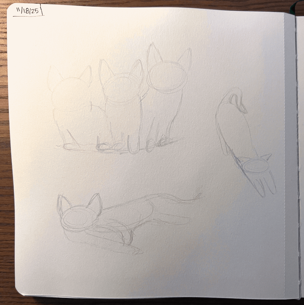 The prompt was Analogous Cats (using analogous colors)… I used water-based gouache and posca paint pens. I played around with mixing some of my gouache and picked the colors I liked…