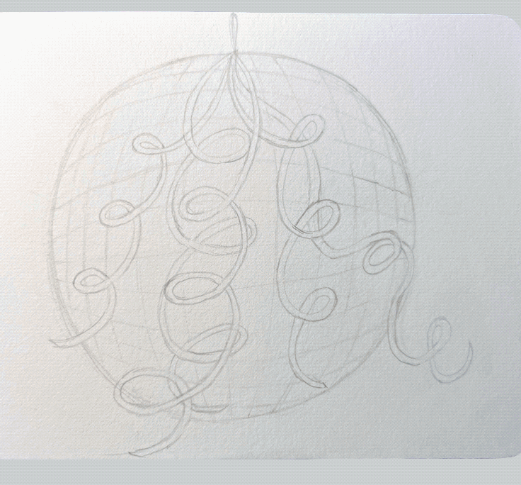 Next up, since it’s shiny watercolor it’s difficult to photograph. So I did a little gif to show the drawing from several angles… hopefully this shows how it shines…