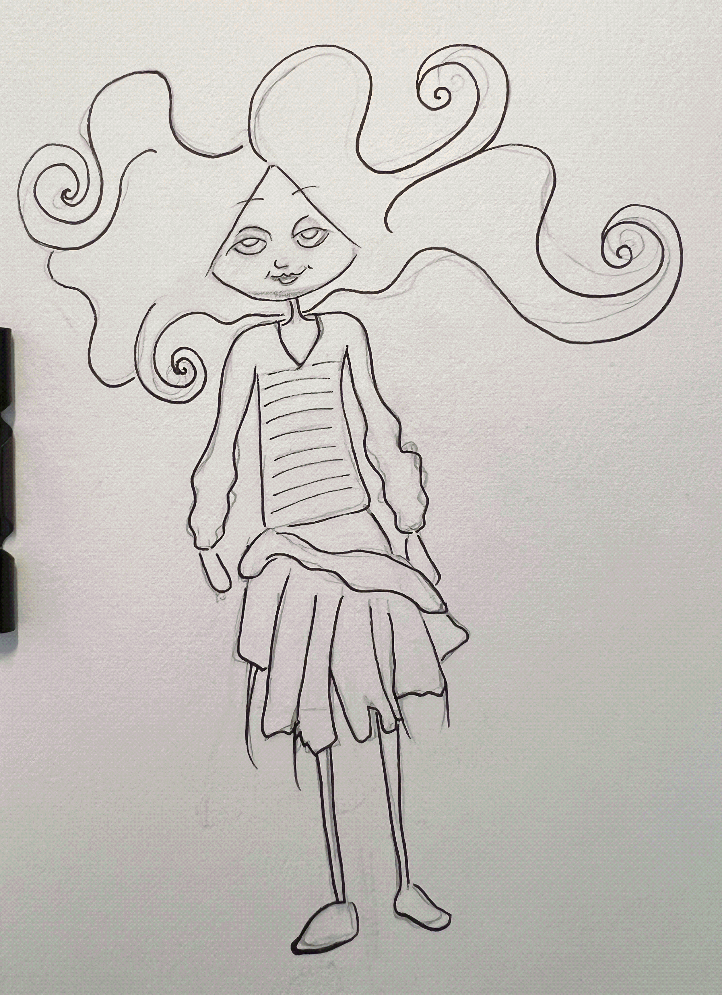 I think when I started the drawing I was really into the swirls of the hair… but now I’m looking at the shape of the face and I hate to say it, but I see a wedge of cheese. 🤣 I wonder if I can ‘fix’ it by making more hair lines around the face. I’ll have to experiment. Because you know what… it’s just paper. And experimenting is how you learn.