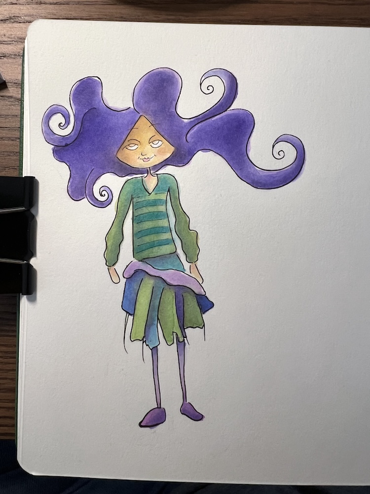 I decided to start with the first book, Widdle Women and had a bit of fun with the first watercolor woman, Sleepy Sue. I forgot how impatient I am when I watercolor… I don’t use a hairdryer, it forces me to step away and come back with fresh eyes when I let it dry naturally.