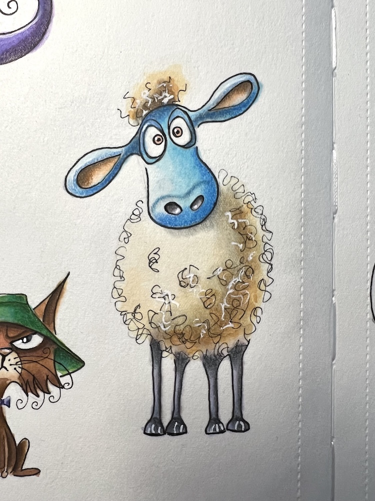 I was in an Art Nest hangout this evening while I worked on the Lamb and the Basset… and I may have forgotten to take extra photos for the progression gifs, oops. So I don’t have any pencil photos of the Basset and I didn’t have as many photos of the painting process for the Lamb. Heh, sorry.