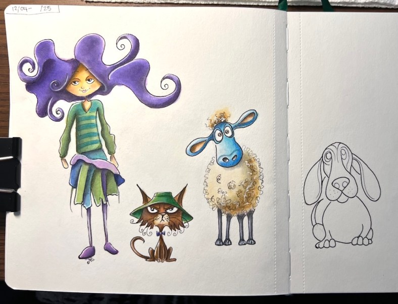 Anyway, here’s what the spread looks like in my sketchbook so far…