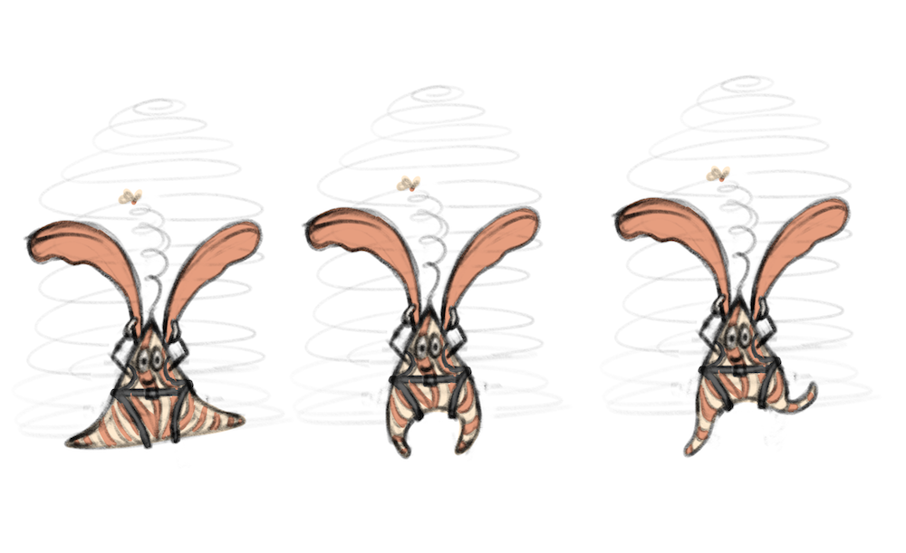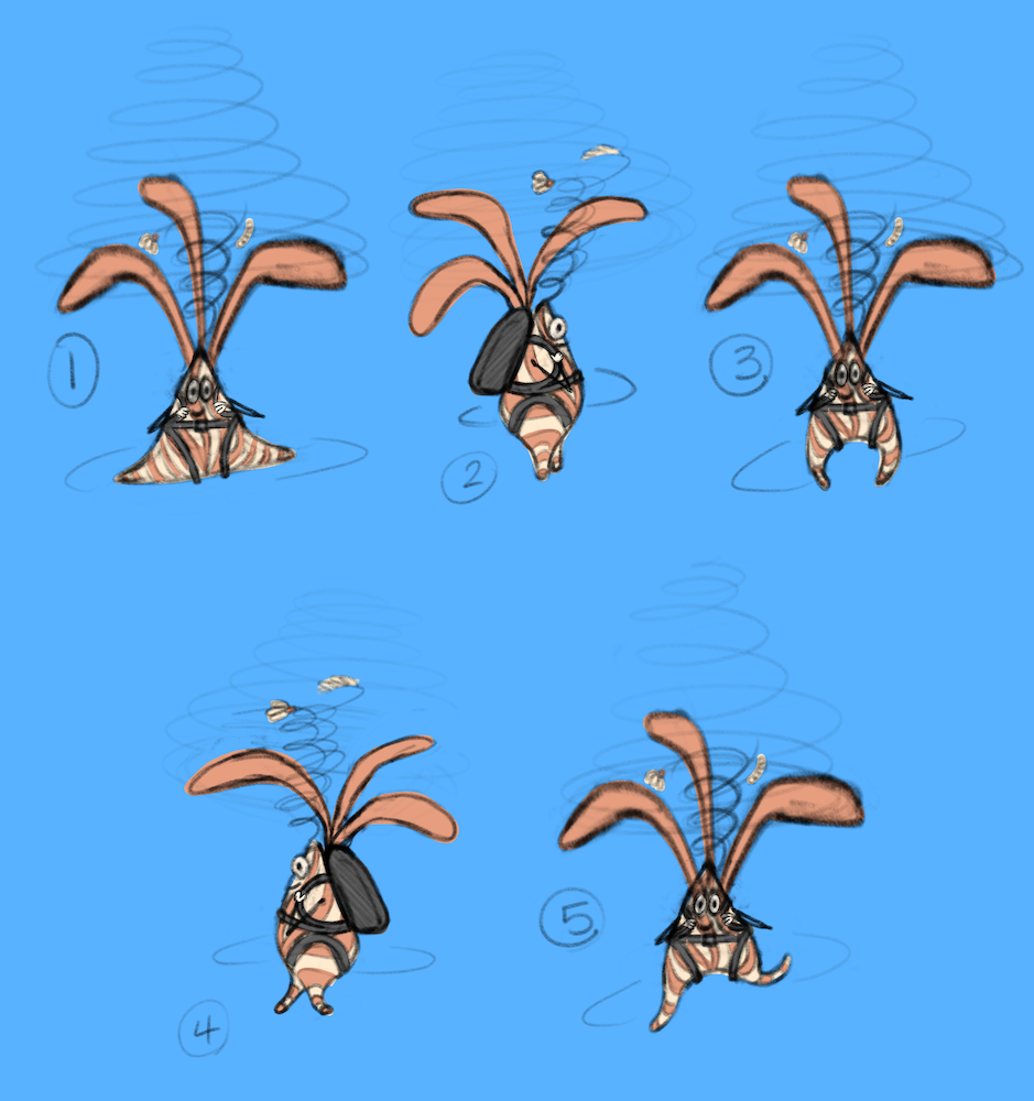 Next is a more complicated one. I’m trying to make it look like the parachute pack has the helicopter samara seeds… originally I was going to do the spinning maple seeds, but they spin nearly horizontally and it wouldn’t read well… so I thought I’d try the samara seeds instead… I went thru a couple of iterations to get to a point that I think might work… I realized I also need to remember to add goggles…