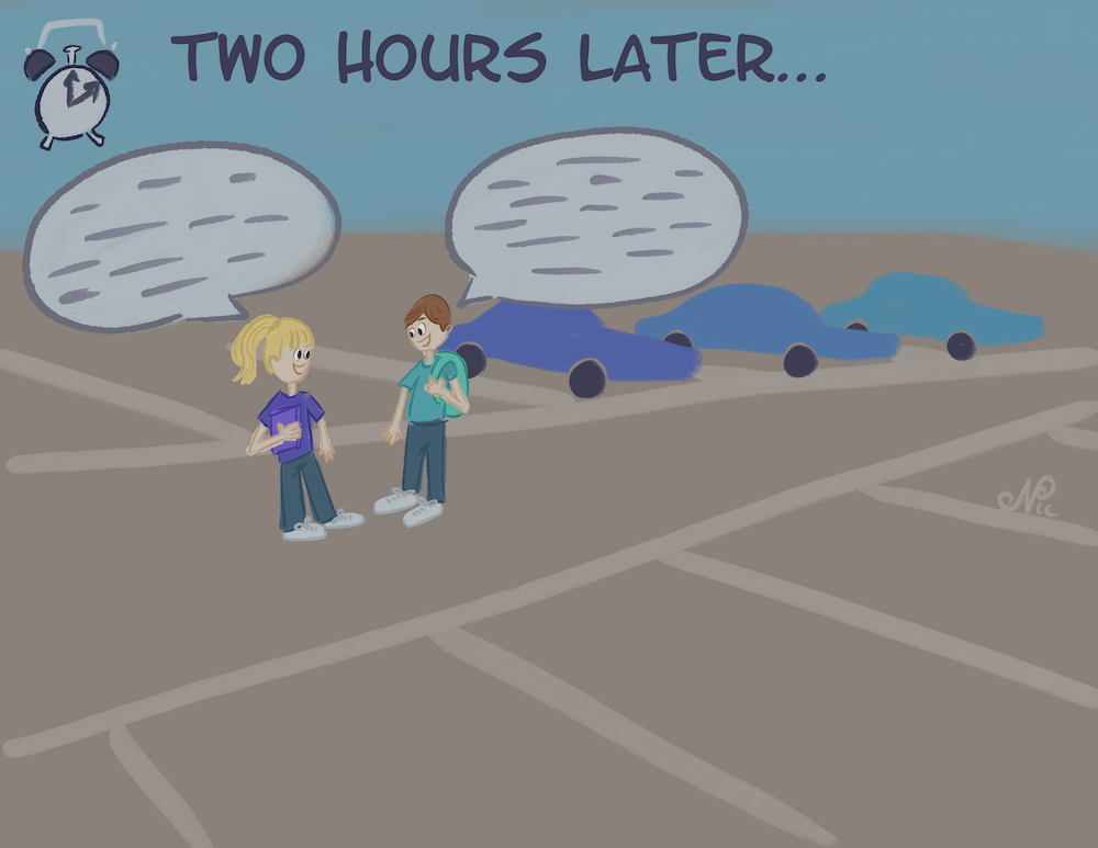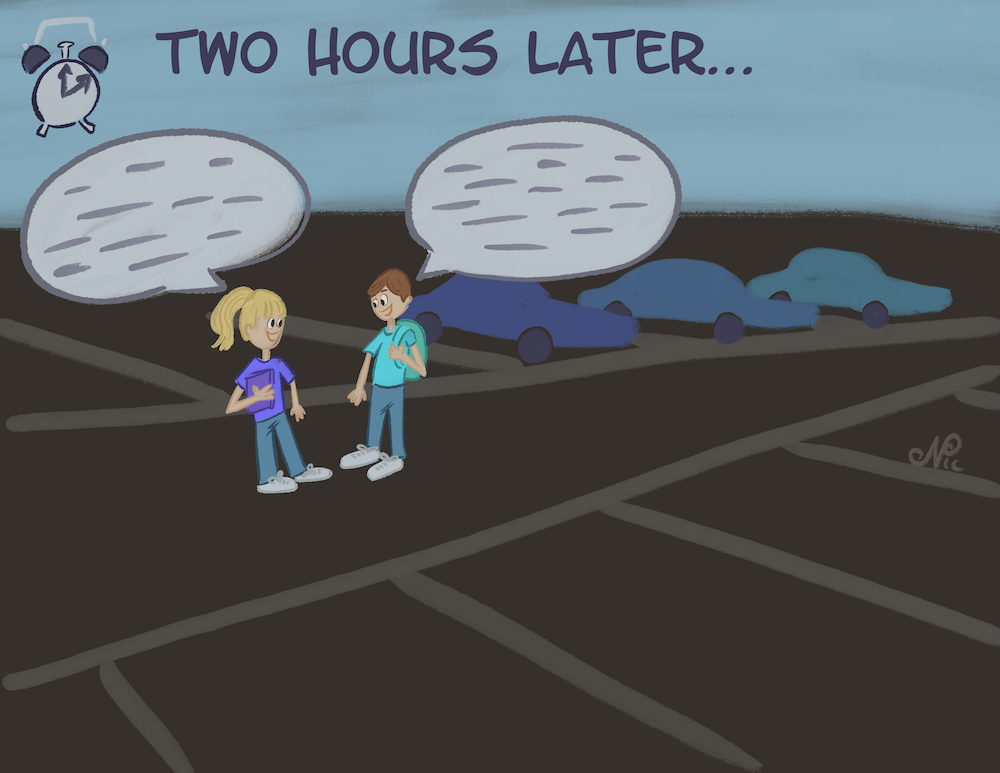 Today, I wanted to see what it would look like if I altered the values some… this is what I came up with… I might have gone a bit too dark on the parking lot, but it does make the characters stand out more…