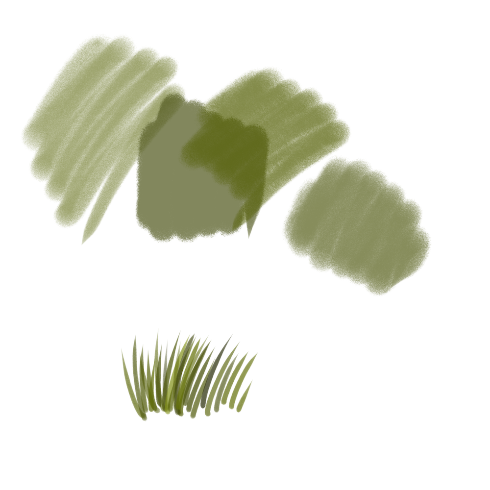 This doesn’t look like much… but we played around with Procreate Brush settings and this is the brush I ended up with at the end of the class… a kind of grass brush that slightly changes color with each stroke. I’ll probably watch the replay because we covered a lot and I had a hard time keeping up…