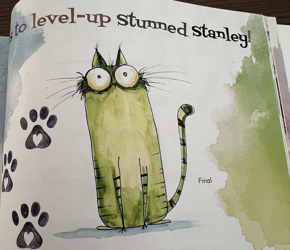 So I took a step back and decided that perhaps my creative cup needed to be refilled. So I started flipping thru a couple of art books that had cats in it. Then I decided to just draw a cat… I flipped thru Karen Campbell’s Wacky Whiskers book and liked 4 cats… then I looked at those cats again and chose Stanley…