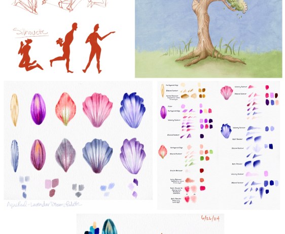 Watercolor Petals, Gesture, and a Tree…
